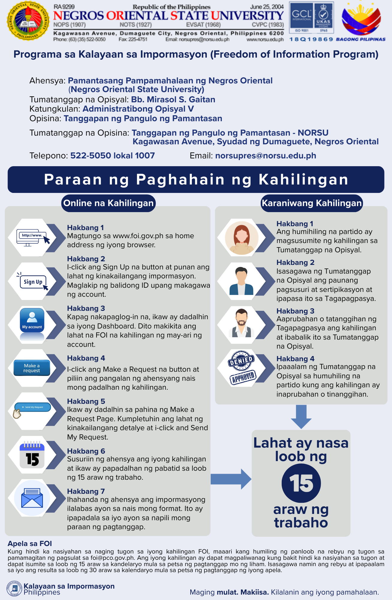 National Budget Circular 542, issued by the Department of Budget and Management on August 29, 2012, reiterates compliance with Section 93 of the General Appropriations Act of FY 2012. Section 93 is the Transparency Seal provision, to with:
