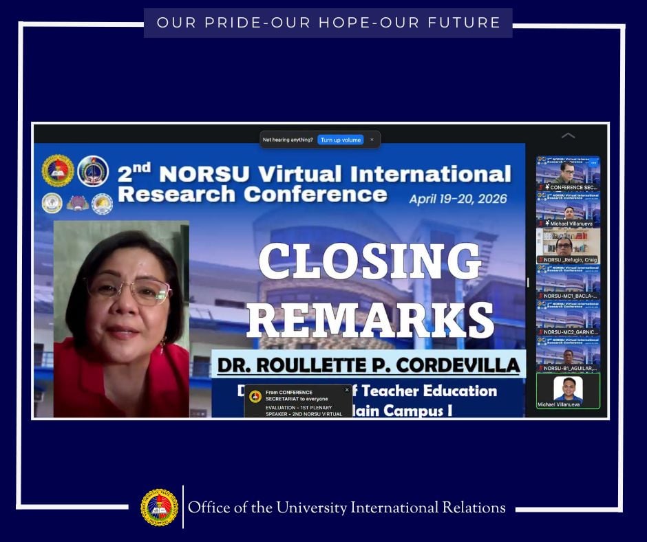 The virtual conference brought together Higher Education Institutions (HEIs) from across the region, including Negros Oriental State University (NORSU), to engage in a meaningful dialogue on global competitiveness and collaboration in higher education.