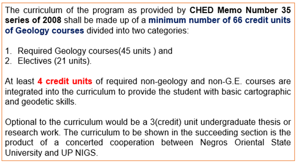 The Bachelor of Science program that would become NORSU’s Geology degree began as an initiative during the Central Visayas Polytechnic College (CVPC) era. It was formulated in 1994 under then-CVPC President Henry A. Sojor, Ph.D., initially proposed as Bachelor of Science in Vulcanology (BOT Resolution No. 7, s. 1994) to address regional needs for volcanic and earth-science expertise. Dr. Sojor’s leadership in the 1990s helped expand CVPC’s academic offerings during a period of institutional growth.