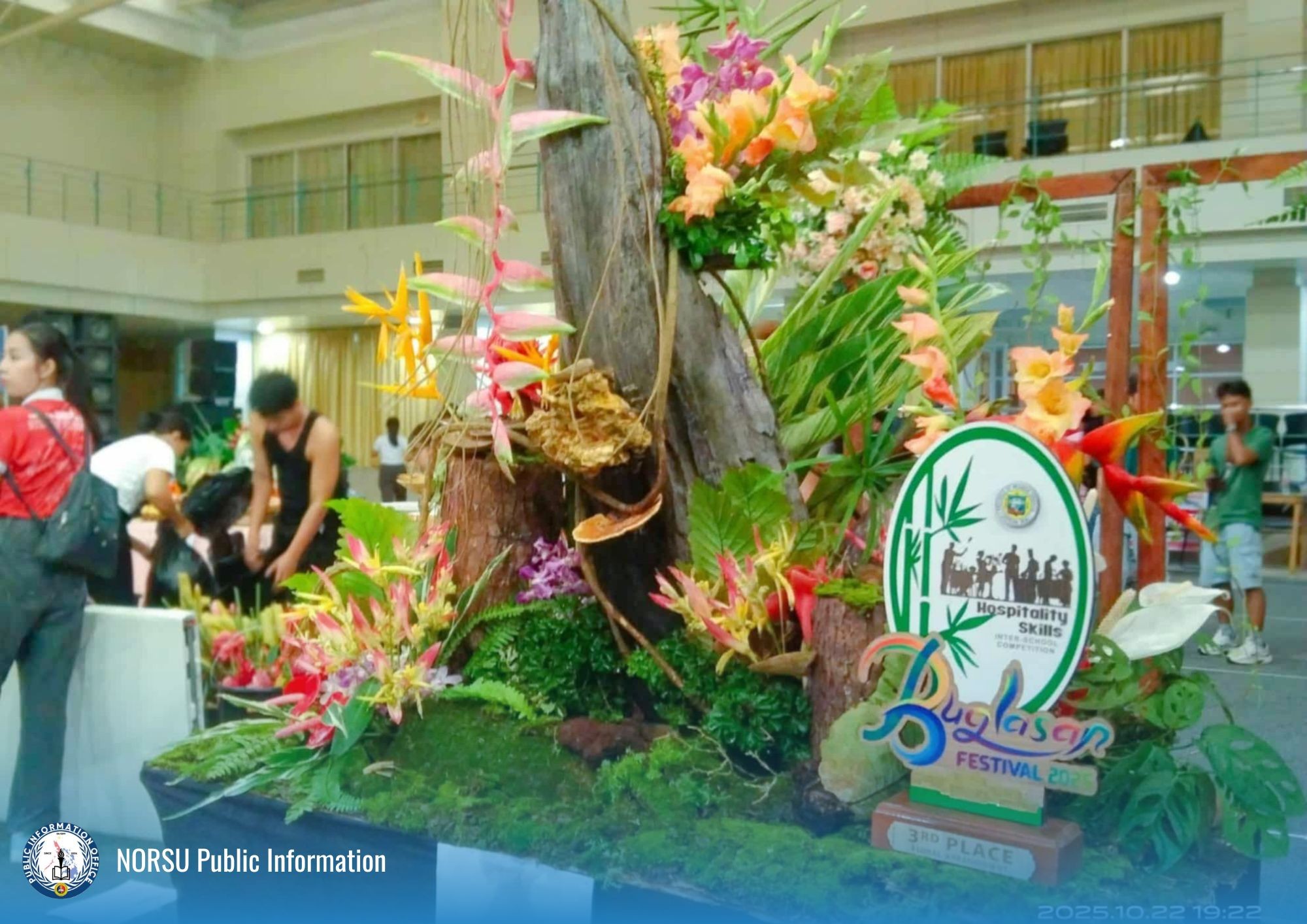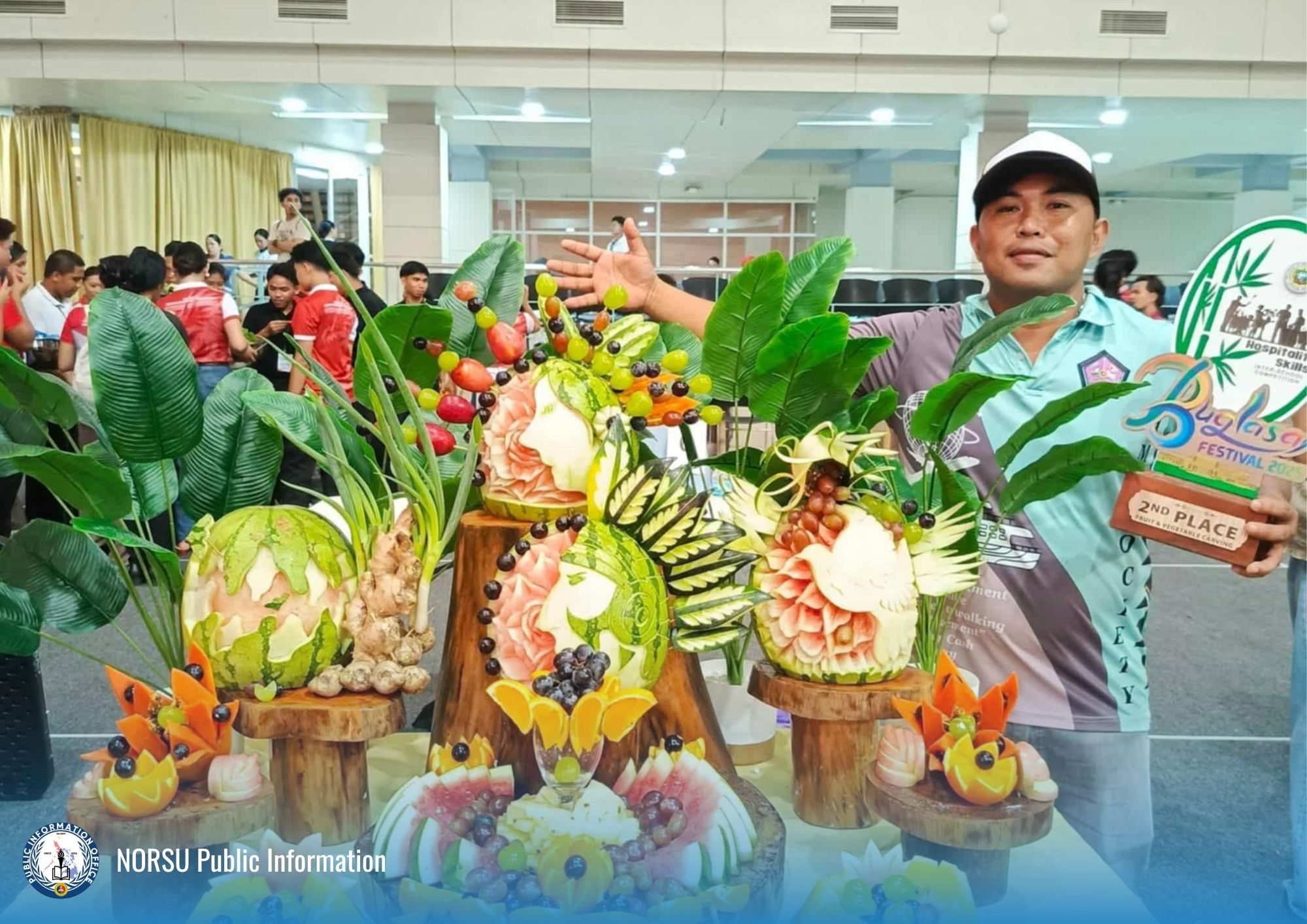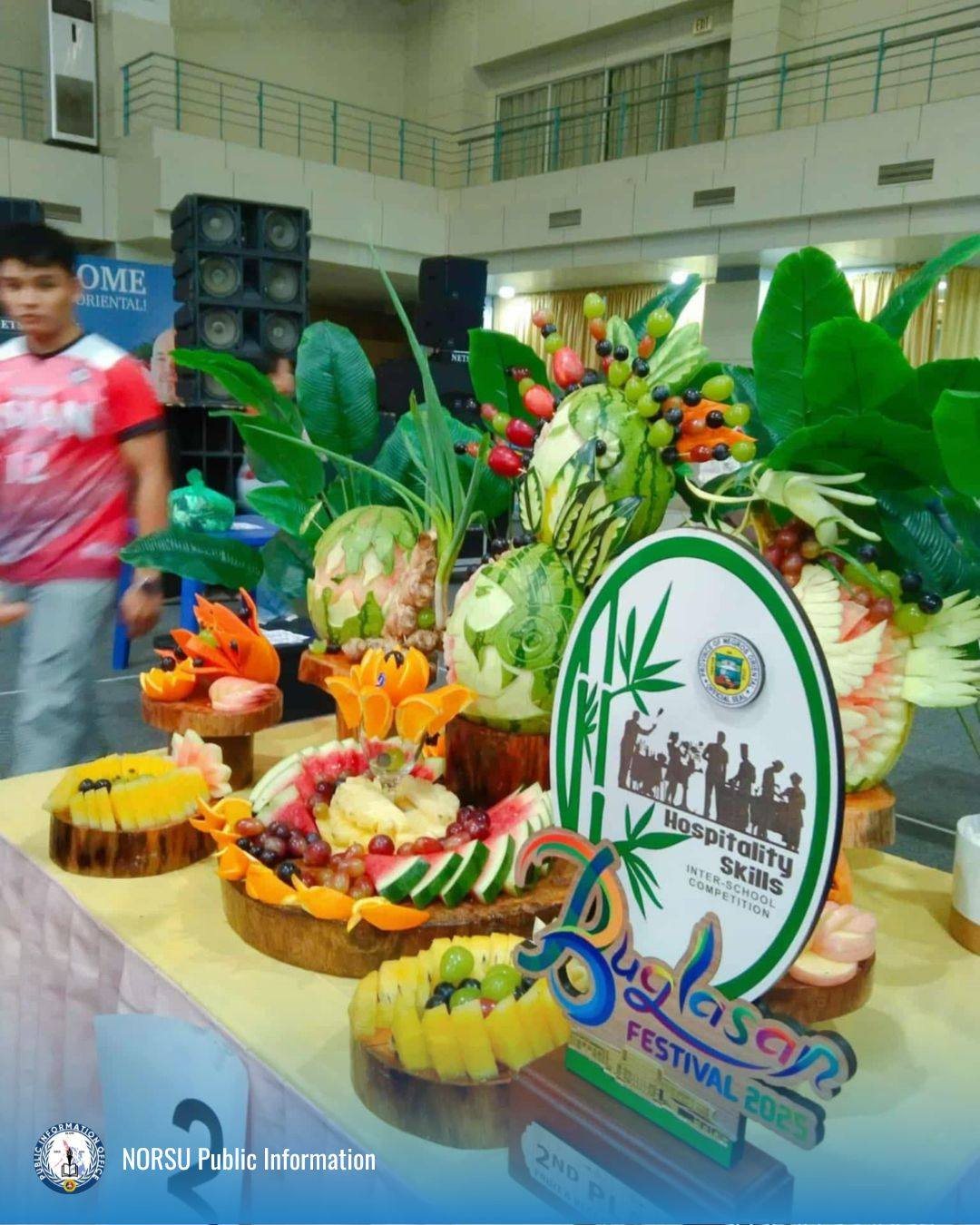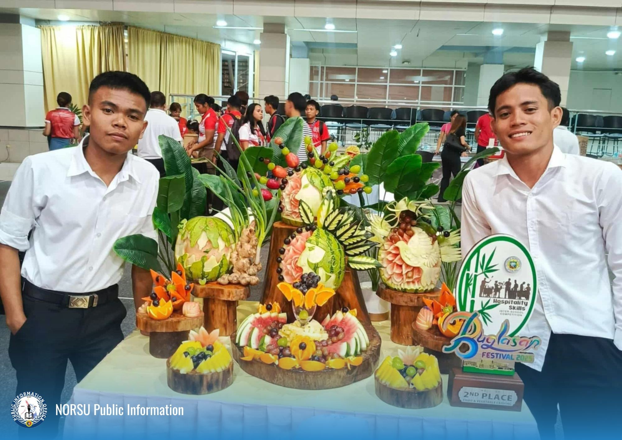 The Bachelor of Science in Hospitality Management of NORSU Mabinay Campus secured 2nd and 3rd places in Fruit and Vegetable Carving and Flower Arrangement, respectively, during the Buglasan Inter-School Hospitality Skills Competition on October 22, 2025