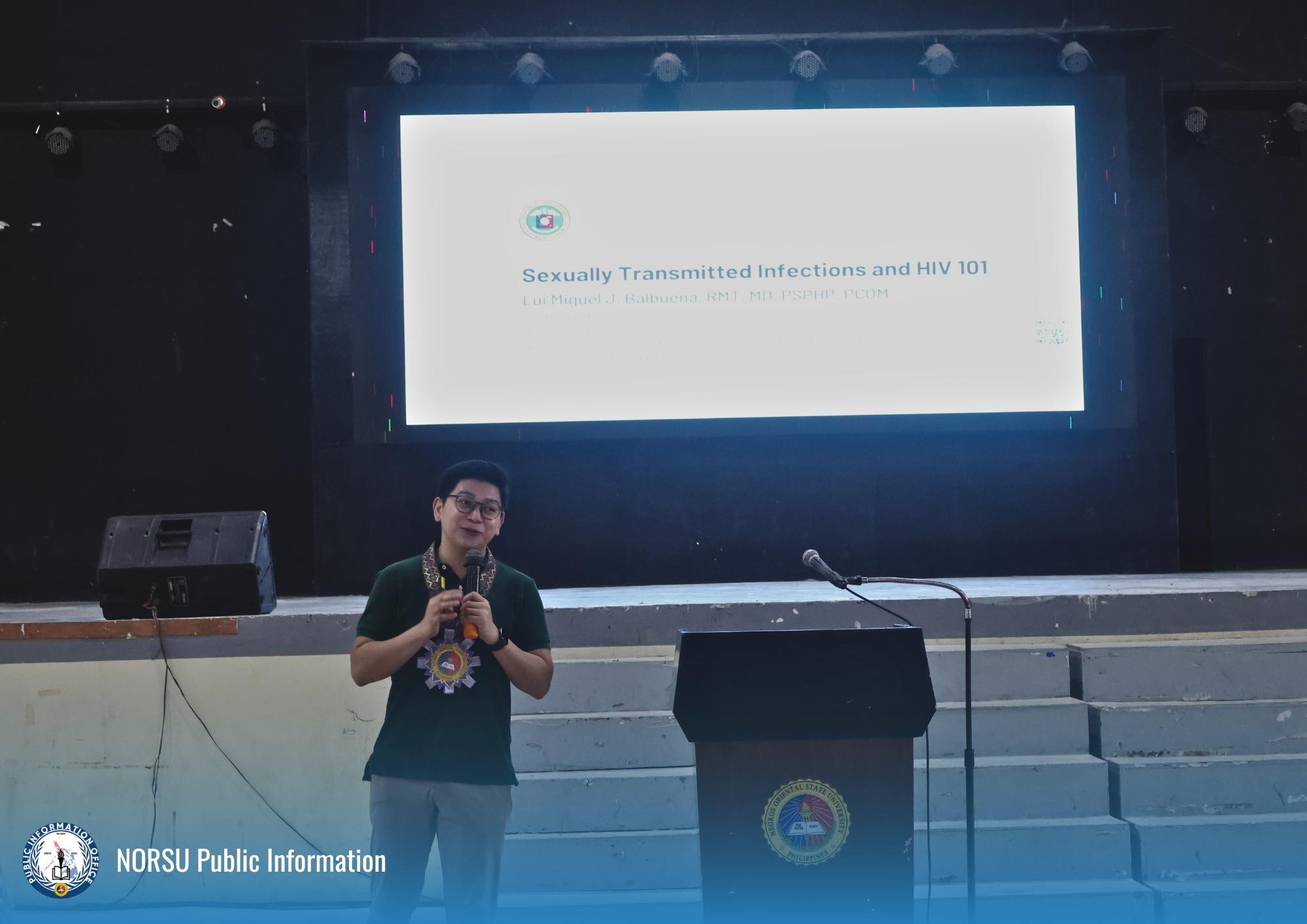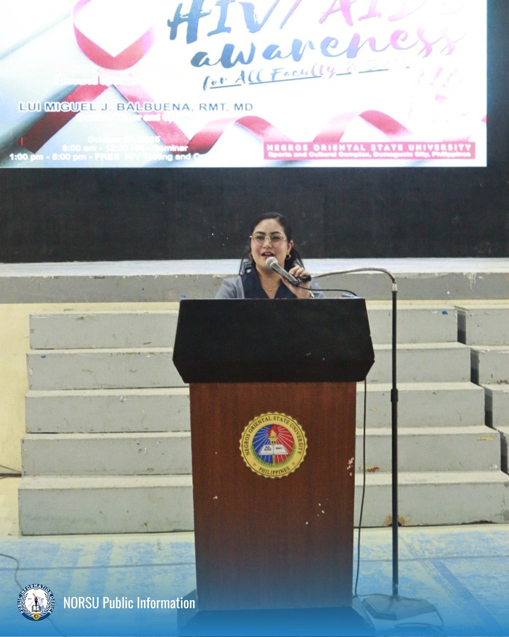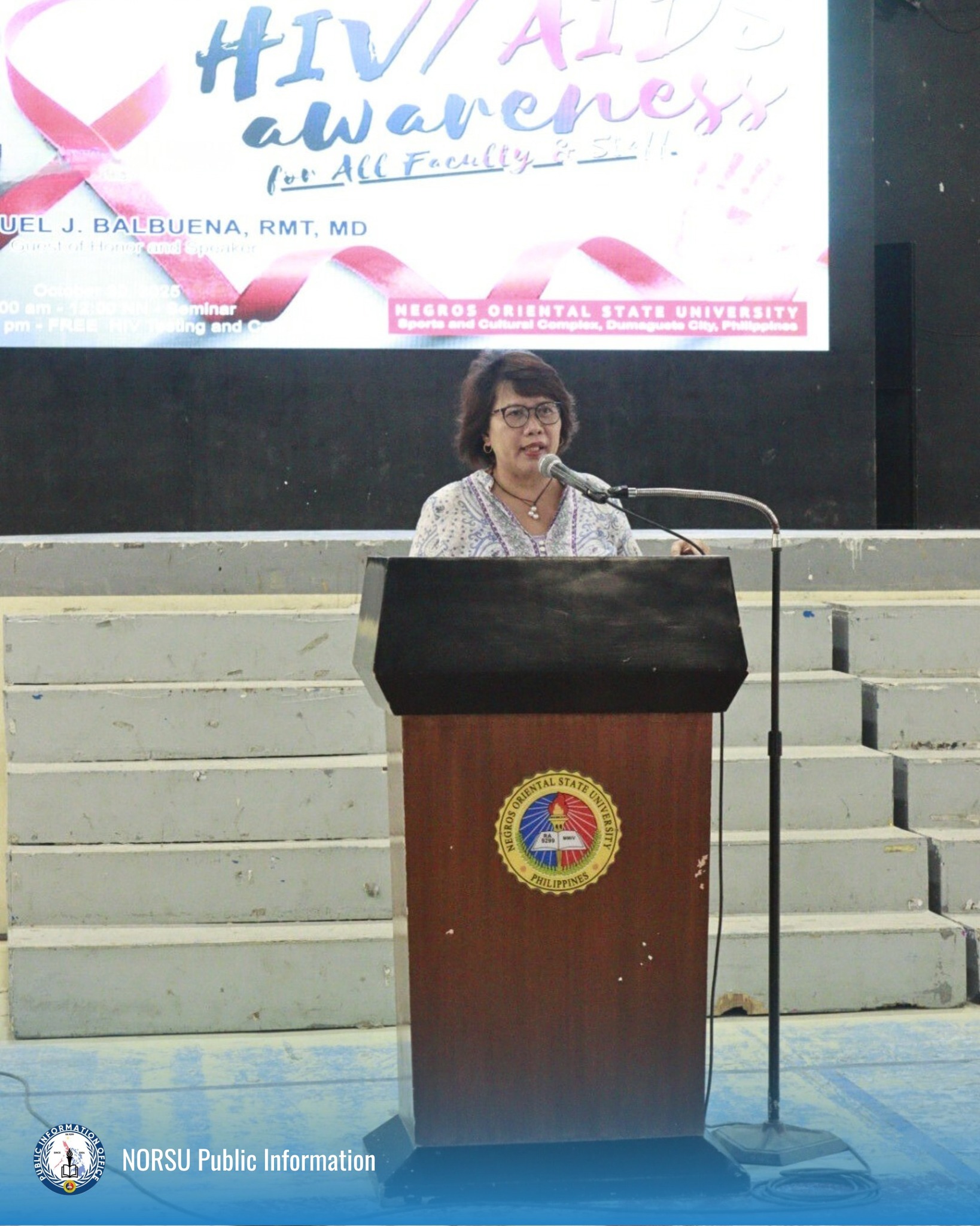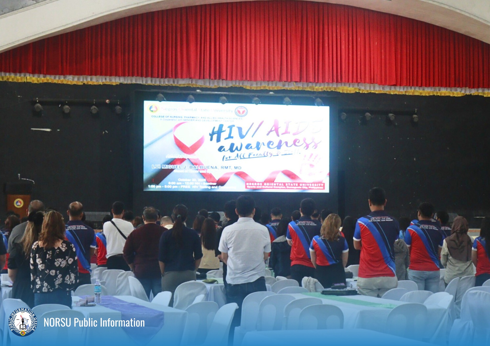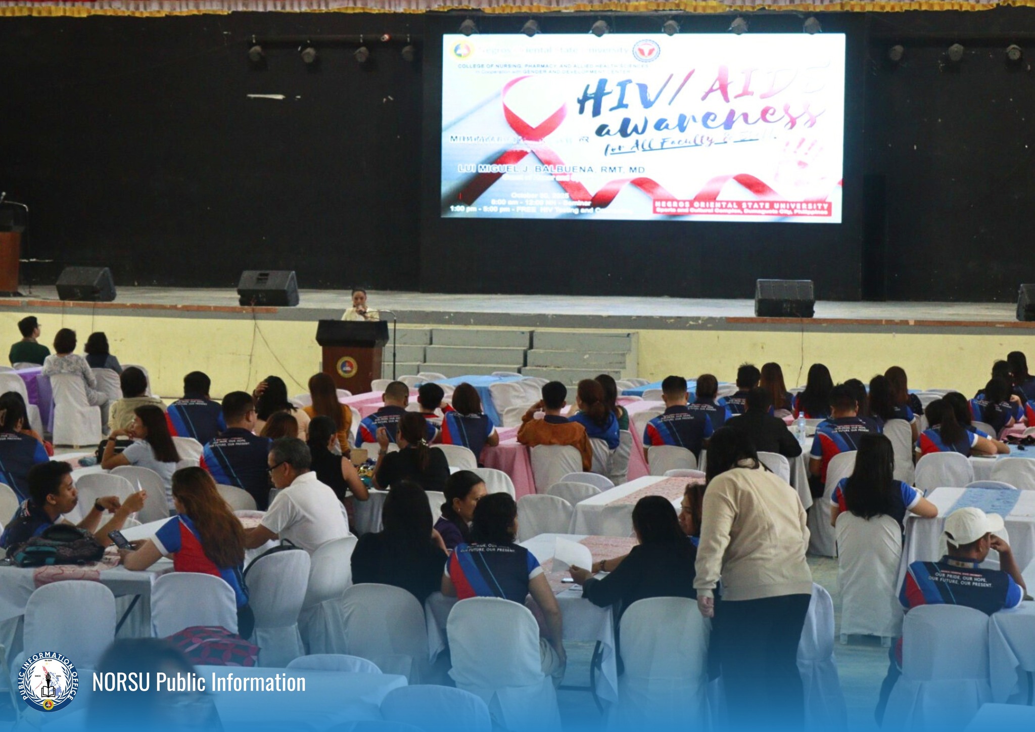 The College of Nursing, Pharmacy, and Allied Health Sciences, in cooperation with the Gender and Development Center of Negros Oriental State University (NORSU), is conducting a seminar on HIV/AIDS awareness at the University Sports and Cultural Complex.