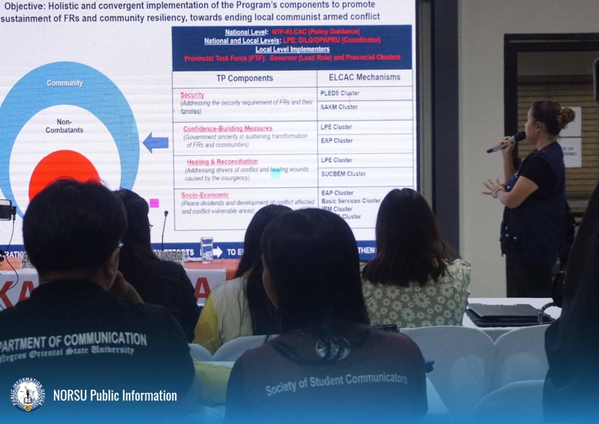 The Office of the Presidential Adviser Peace Reconciliation Unit (OPAPRU) Negros Oriental Coordinator, Ms. Jennifer April M. Casalem, shared updates on the KAPATIRAN Program intended for the reintegration of former members of the rebel groups back into society.