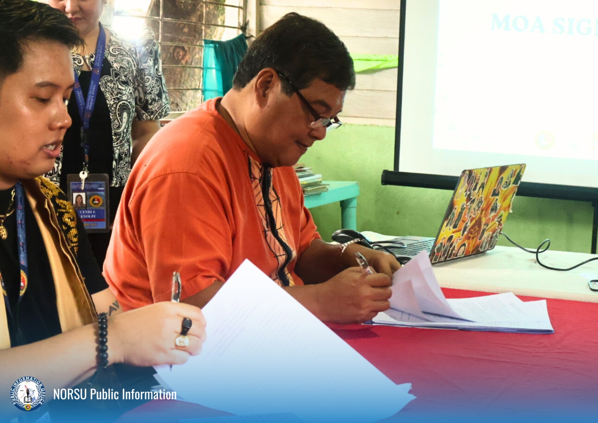 The signing of the Memorandum of Agreement for the establishment of the Candau-ay Reading Center at the Reading Center Site, Barangay Candau-ay, Dumaguete City, between the Negros Oriental State University Library and the College of Arts and Sciences, Negros Oriental Librarian Association (NORLA), Silliman University, and Barangay Candau-ay.