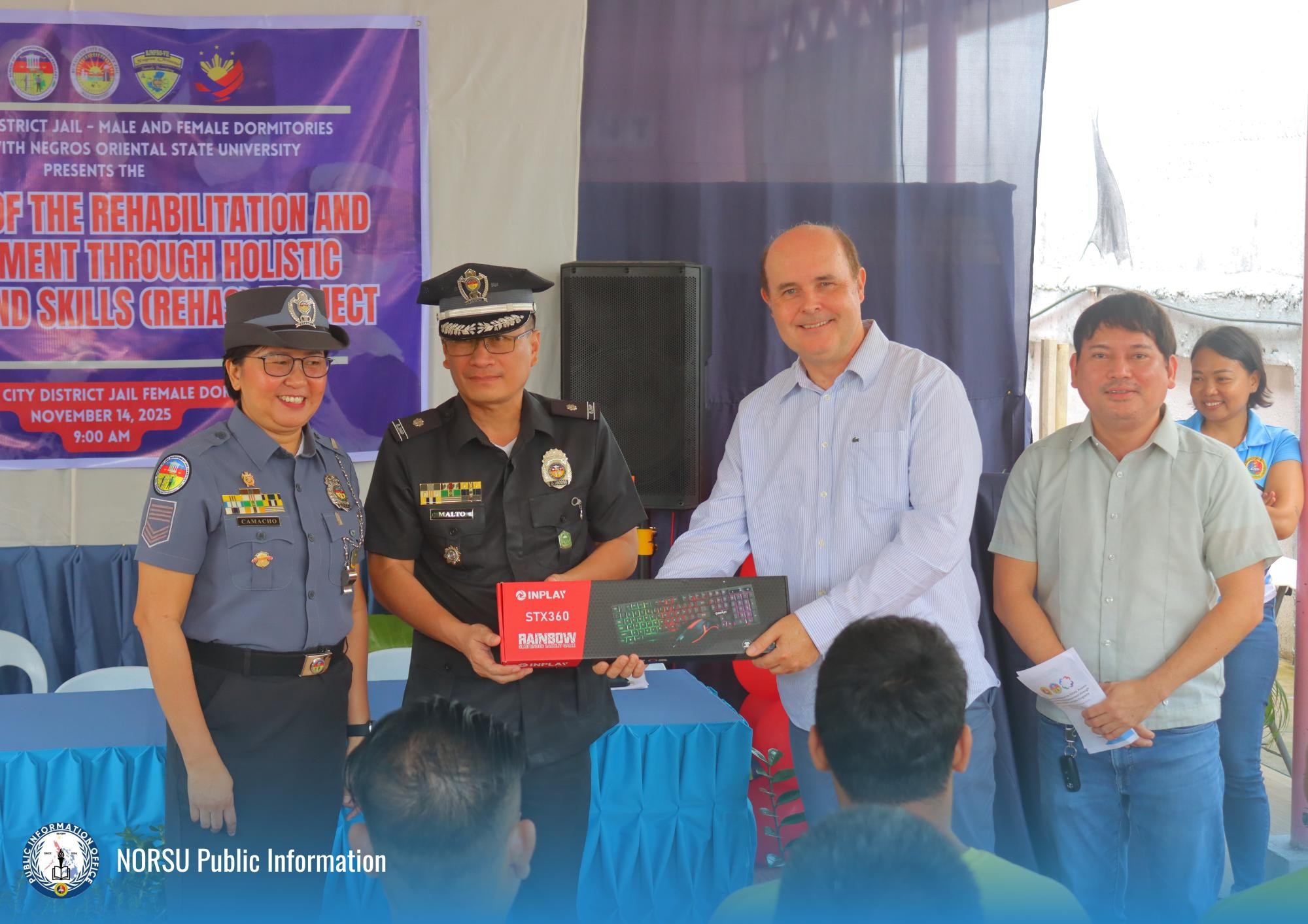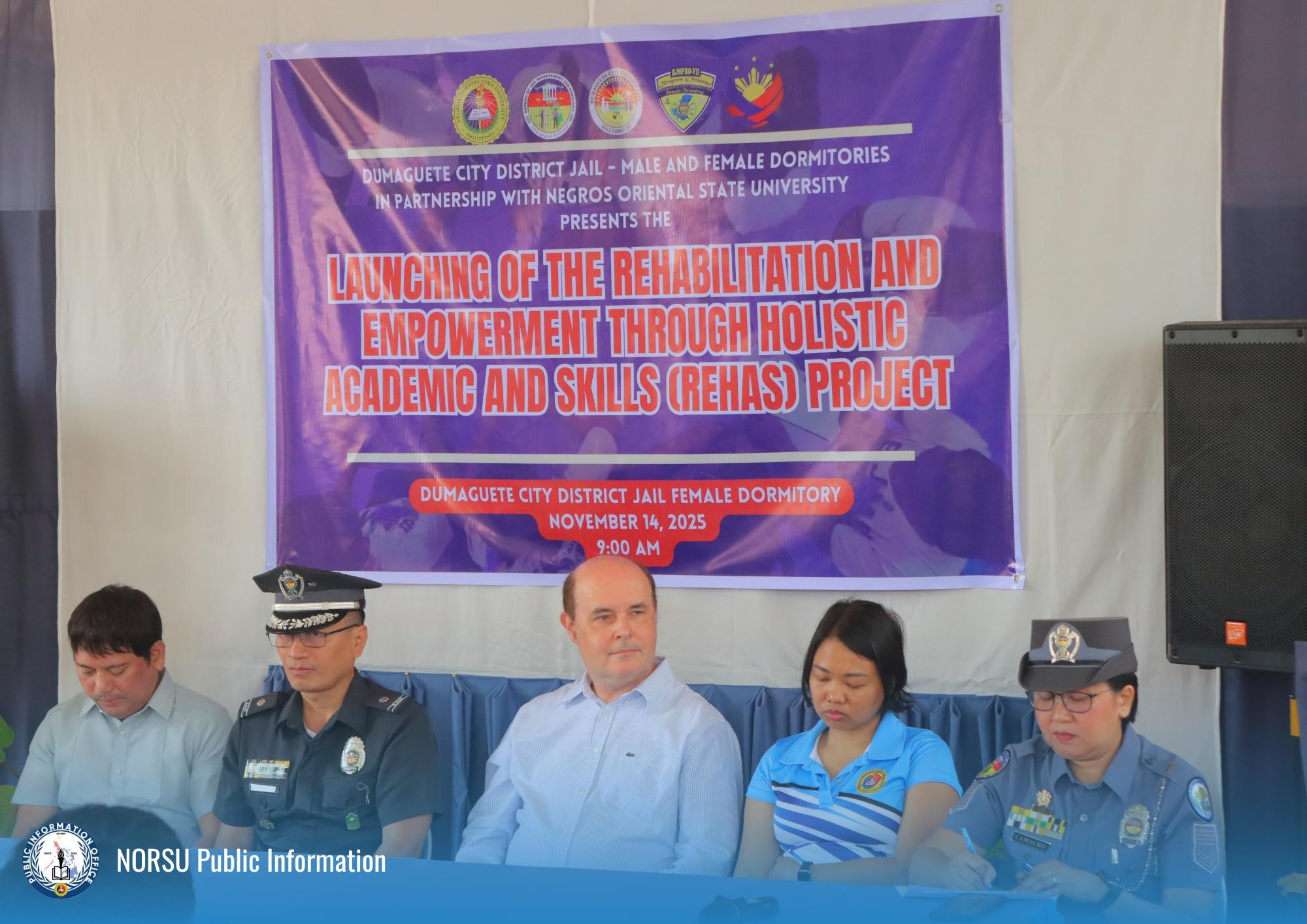 The Rehabilitation and Empowerment through Holistic Academic and Skills Programs (REHAS Project) was officially launched today, November 14, 2025, at the Dumaguete City District Jail Female Dorm. The NORSU REHAS project is a collaborative program by Negros Oriental State University (NORSU) and the Bureau of Jail Management and Penology (BJMP) that aims to provide rehabilitation and empowerment to Persons Deprived of Liberty (PDLs). The project provides formal higher education and technical-vocational training to PDLs to aid their reintegration into society.
