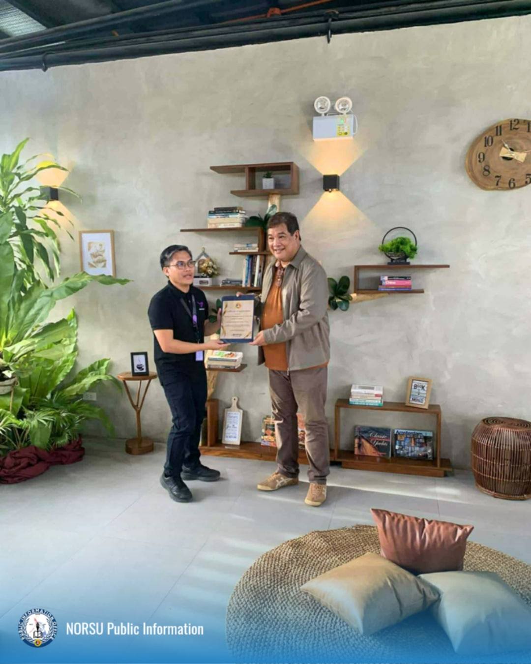 A Donation Ceremony was held yesterday to formally turn over to the university the Reading Nook donated by the Negros Oriental State University Diploma of Technology Batch 2005. The books will be donated by the NORSU Library. The project is situated at the University Bistro of the Main Campus.