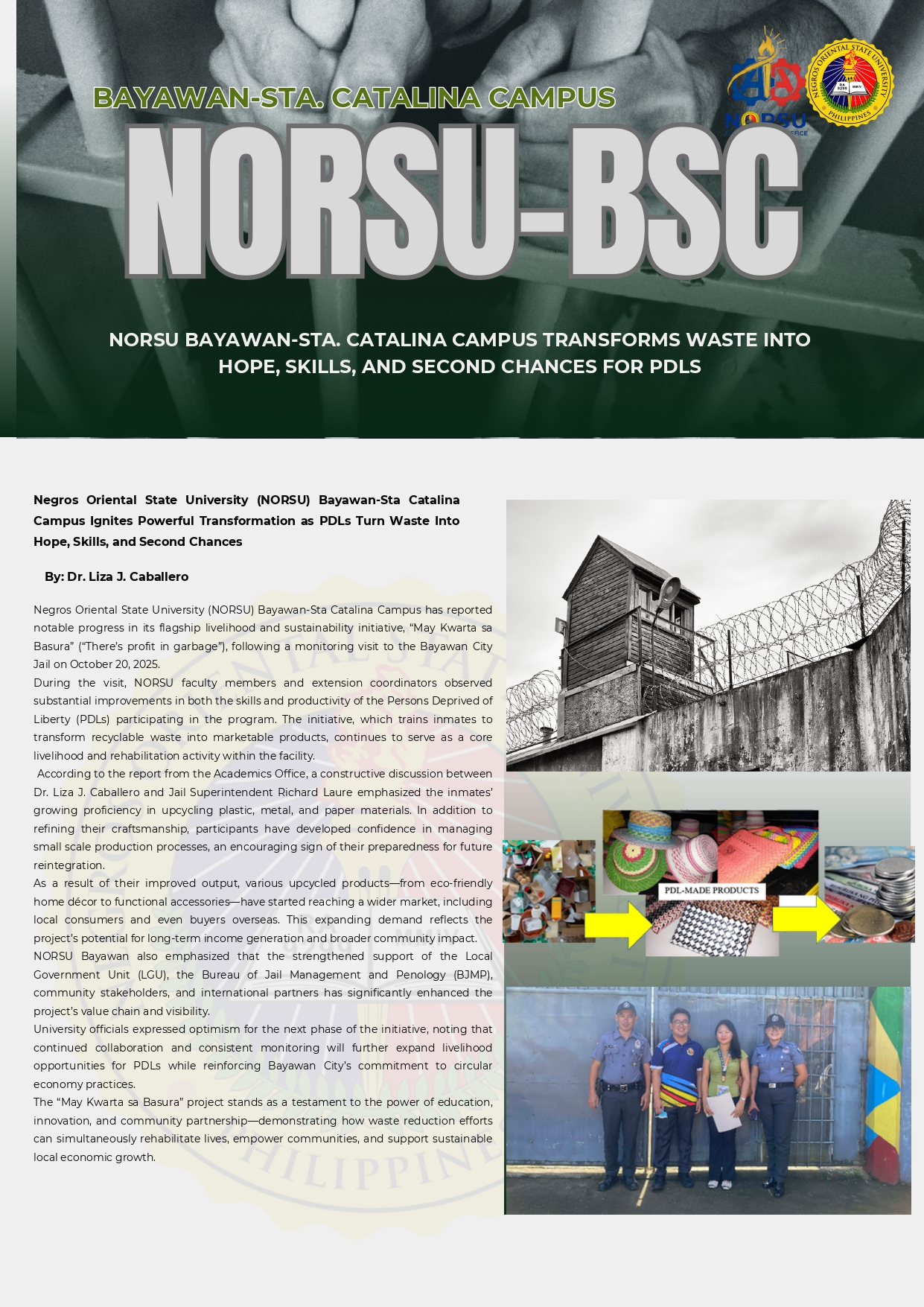 Negros Oriental State University (NORSU) Bayawan-Sta Catalina Campus Ignites Powerful Transformation as PDLs Turn Waste Into Hope, Skills, and Second Chances