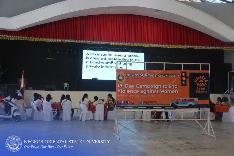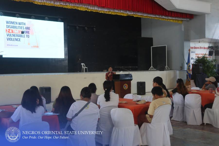 Negros Oriental State University is joining the observance of the 18-Day Campaign to End Violence Against Women, celebrated from November 25 to December 12, 2025. In line with this, the University Gender and Development (GAD) Center, under the leadership of Dr. Aileen Rosette M. Felix, is conducting today, December 10, 2025, a lecture to promote awareness and prevention of violence against persons with disabilities: A Community Affair Program.