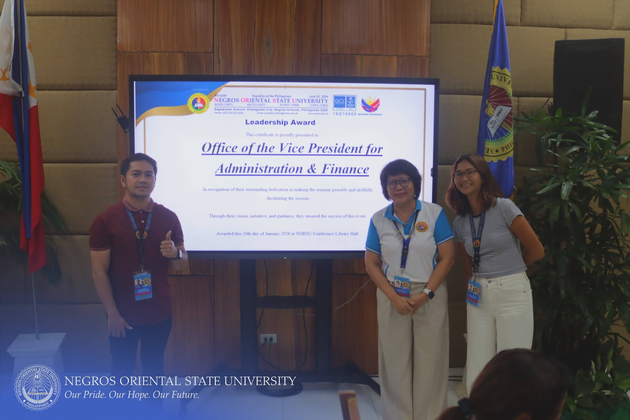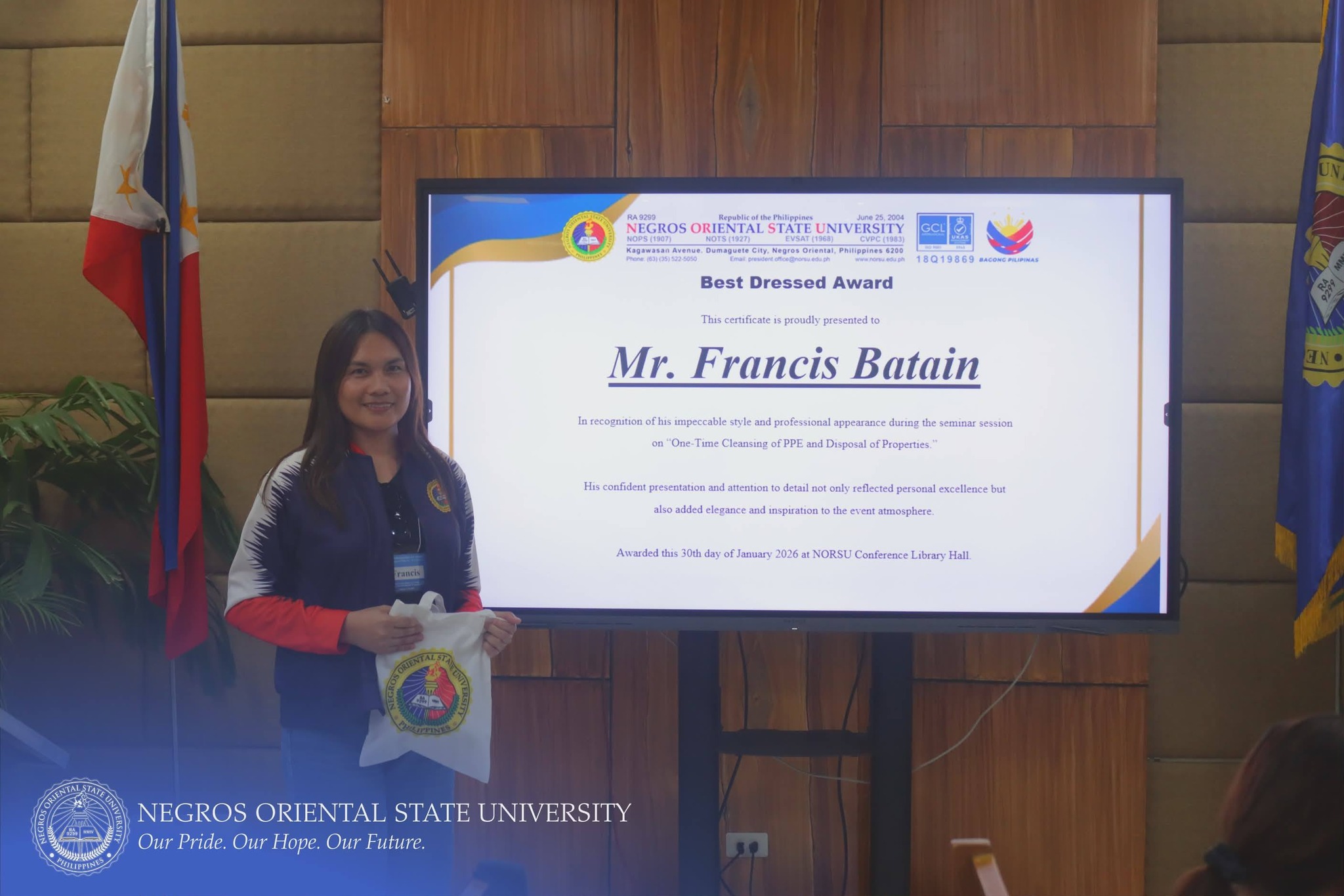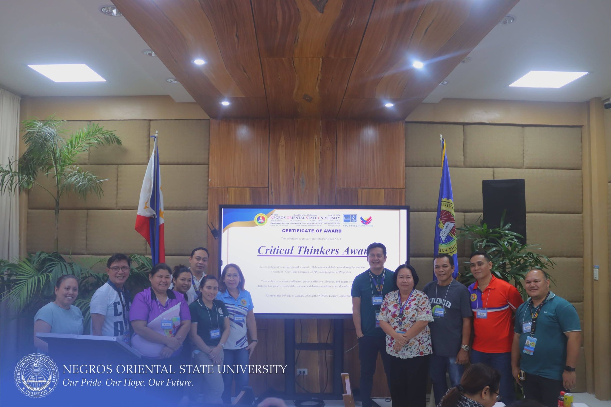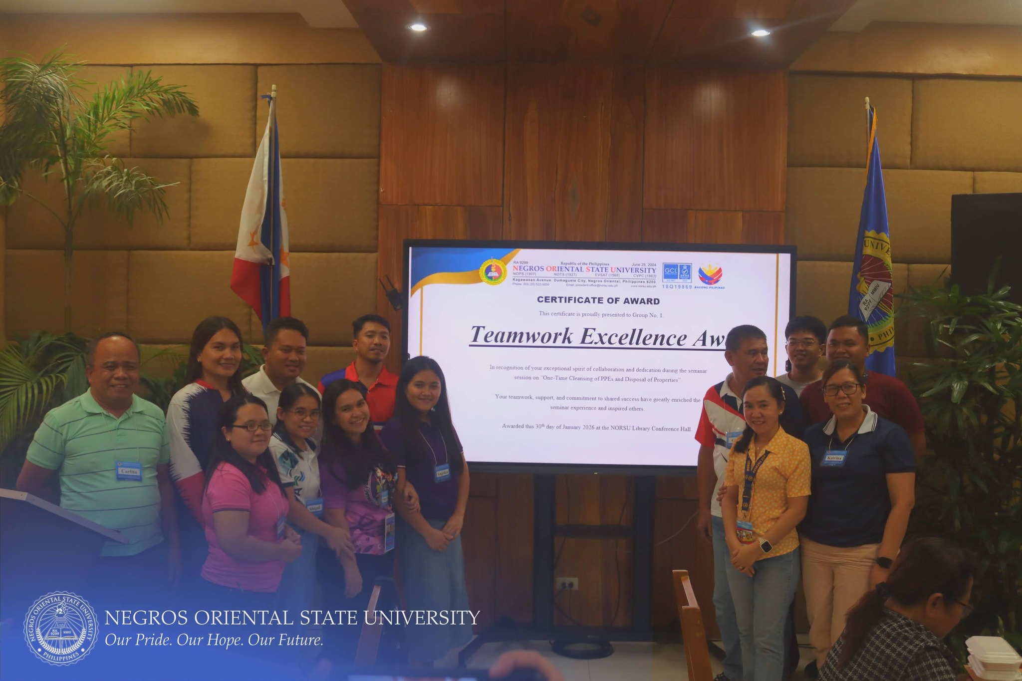 The Commission on Audit (COA) Regional Office No. VII, in collaboration with Negros Oriental State University (NORSU), conducted a comprehensive four-day seminar-workshop titled "One-time Cleansing of Property, Plant, and Equipment (PPE) Account Balances of Government Agencies and the Disposal of Government Properties". The event was held at the NORSU Main Campus Library Conference Room on January 27-30, 2026. It aims to orient and update personnel involved in property, supply, and accounting management on the proper procedures for PPE account reconciliation, documentation, and disposal of unserviceable properties in accordance with existing government accounting and auditing rules and regulations.