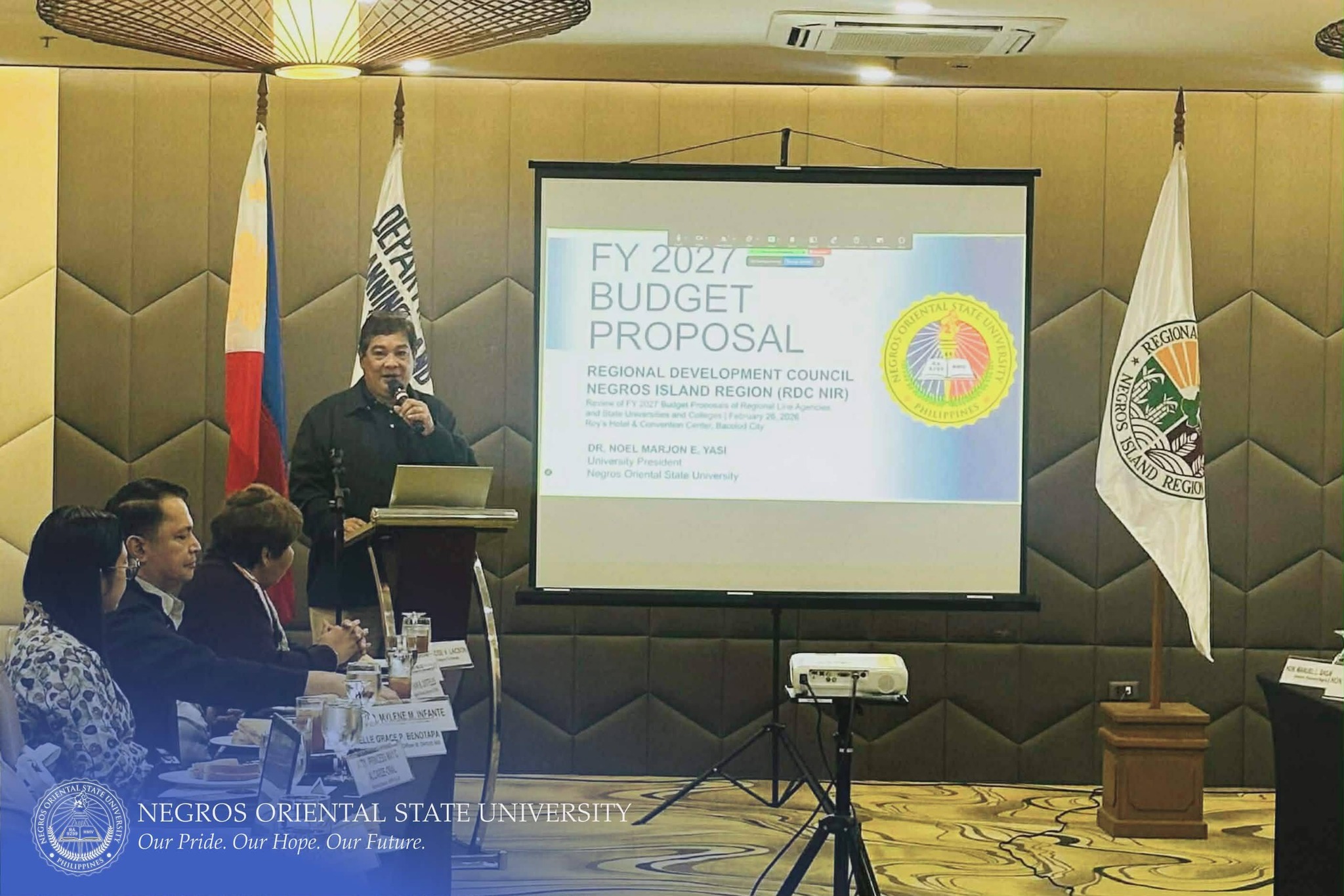 NORSU President Noel Marjon E.Yasi presented the University FY 2027 Budget Proposal before the members of Social Development Committee of Negros Island Region.