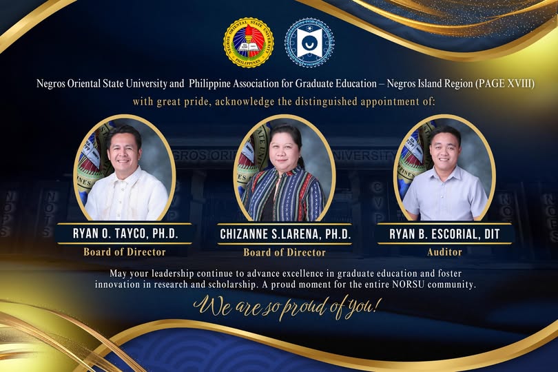𝗡𝗲𝗴𝗿𝗼𝘀 𝗢𝗿𝗶𝗲𝗻𝘁𝗮𝗹 𝗦𝘁𝗮𝘁𝗲 𝗨𝗻𝗶𝘃𝗲𝗿𝘀𝗶𝘁𝘆 (𝗡𝗢𝗥𝗦𝗨) proudly celebrates the appointment of our very own members of the faculty to the 𝗣𝗵𝗶𝗹𝗶𝗽𝗽𝗶𝗻𝗲 𝗔𝘀𝘀𝗼𝗰𝗶𝗮𝘁𝗶𝗼𝗻 𝗳𝗼𝗿 𝗚𝗿𝗮𝗱𝘂𝗮𝘁𝗲 𝗘𝗱𝘂𝗰𝗮𝘁𝗶𝗼𝗻 – 𝗡𝗲𝗴𝗿𝗼𝘀 𝗜𝘀𝗹𝗮𝗻𝗱 𝗥𝗲𝗴𝗶𝗼𝗻.